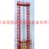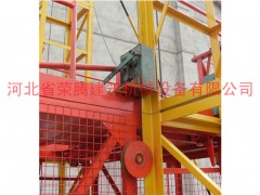 SSE160型自升式门架升降机:本机设自动平台,可使升降机随施工高度上升或下降,设有附着架,利用工地脚手架钢管和墙体相连接,因而不需要拉缆风绳,适合在各种狭小施工场地使用,有效的改善了施工现场的环境。吊笼设有防坠安全器和活动保险杠(保险门)。防附安全器能够在钢丝绳突然发生断裂时使吊笼立即悬停在钢丝绳断裂时所在高度标节的横梁上,防止吊笼坠地事故的发生。安装在吊笼底部的活动保险杠,能使吊笼在施工所需楼层停留装卸物料时,伸出并拱放在两侧标准节的固定保险杠上,(用工地脚手架钢管合成),防止施工人员在吊笼内装卸物料时,吊笼坠地,发生伤亡事故,使施工更加安全。自升平台设有手动卷扬机,使升降机安装、拆卸、上升或下降无需外部提供动力,有效的保护安装施工人员的人身安全,降低了施工人员的劳动强度。